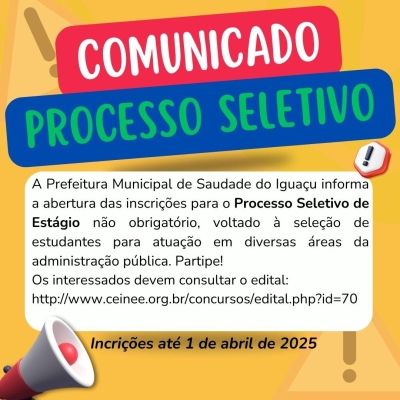 Prefeitura de Saudade do Iguaçu abre Processo Seletivo Simplificado com vagas em diversas áreas