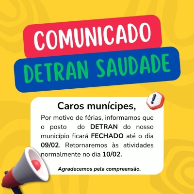 Aviso Importante: Férias no Posto do DETRAN de Saudade do Iguaçu