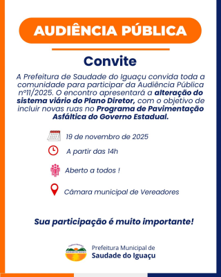Participe da Audiência Pública do PPA 2026-2029 e ajude a construir o futuro de Saudade do Iguaçu!