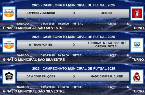 Campeonato Municipal de Futsal neste sábado (31/05)