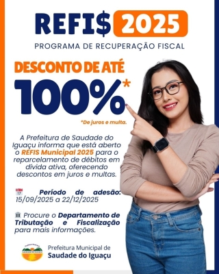 REFIS 2025: Contribuintes de Saudade do Iguaçu podem regularizar débitos com descontos em juros e multas!
